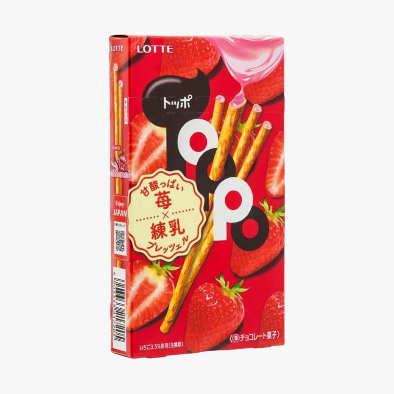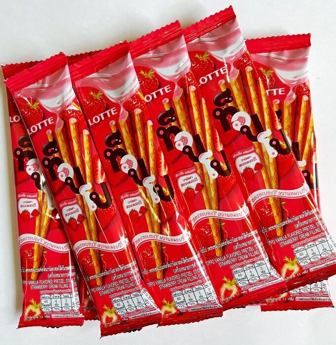 Это тонкие трубочки из хрустящего несладкого печенья, заполненные шоколадом со вкусом клубники.